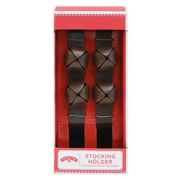 Holiday Time Stocking Holders, Jingle Bell (Bronze) for Home Fireplace DecorationPack of 2 Matching Stocking Holders