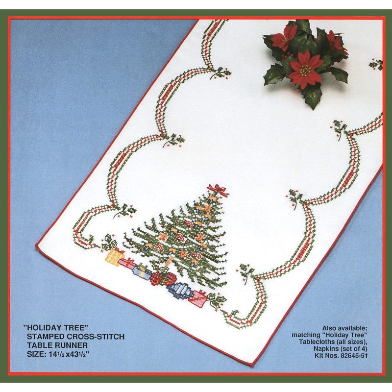Holiday Tree Stamped Cross Stitch Table Runner Kit
