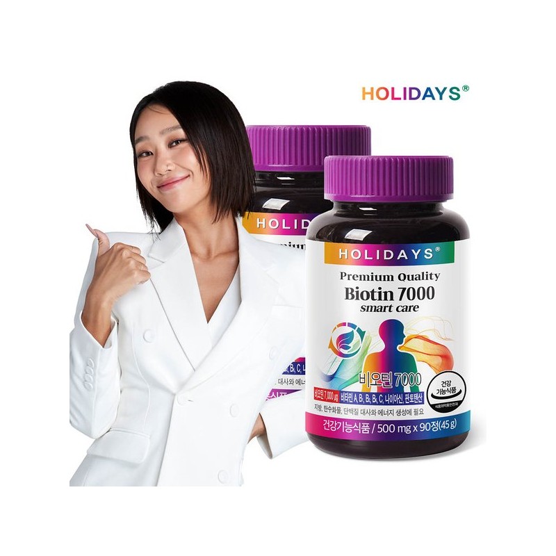 Holidays 홀리데이즈 비오틴7000 90정 2병 (6개월분) Holidays Biotin 7000 90 Tablets 2 Bottles (6 Months Supply)