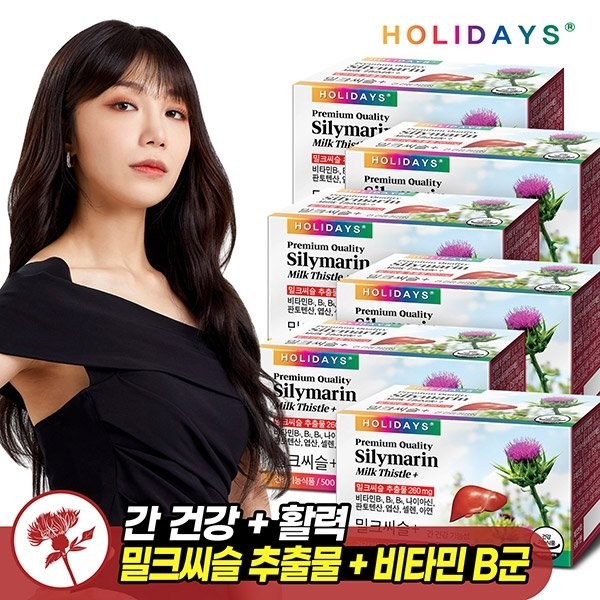 Holidays Vitamin B Enhanced Silymarin Milk Thistle+ x 6 boxes (total 6 months supply), none / 홀리데이즈 비타민B군 강화 실리마린 밀크씨슬+ x 6박스 (총6개월분), 없음