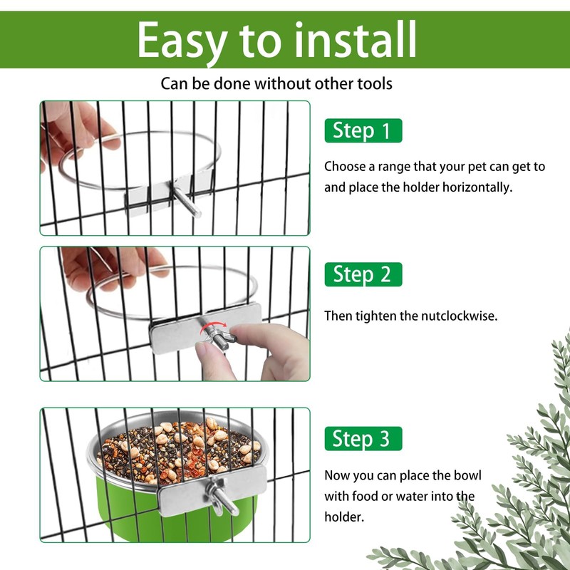 - 【Easy to Clean】These stainless steel bird bowls feature a detachable design. When you clean the bird dishes, they can be easily removed from the holder. It only requires rinsing with clean water or wiping with a mild detergent to effortlessly keep the bird bowls clean.