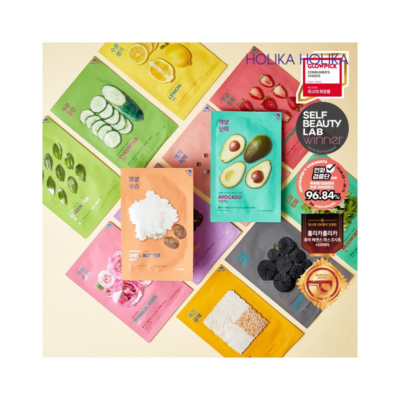 Holika Holika [20 sheets + 20 sheets] Pure Essence Mask Sheet, Strawberry Strawberry_AvocadoAvocado / 홀리카홀리카 [20매+20매] 퓨어 에센스 마스크시트, 딸기딸기_아보카도아보카도