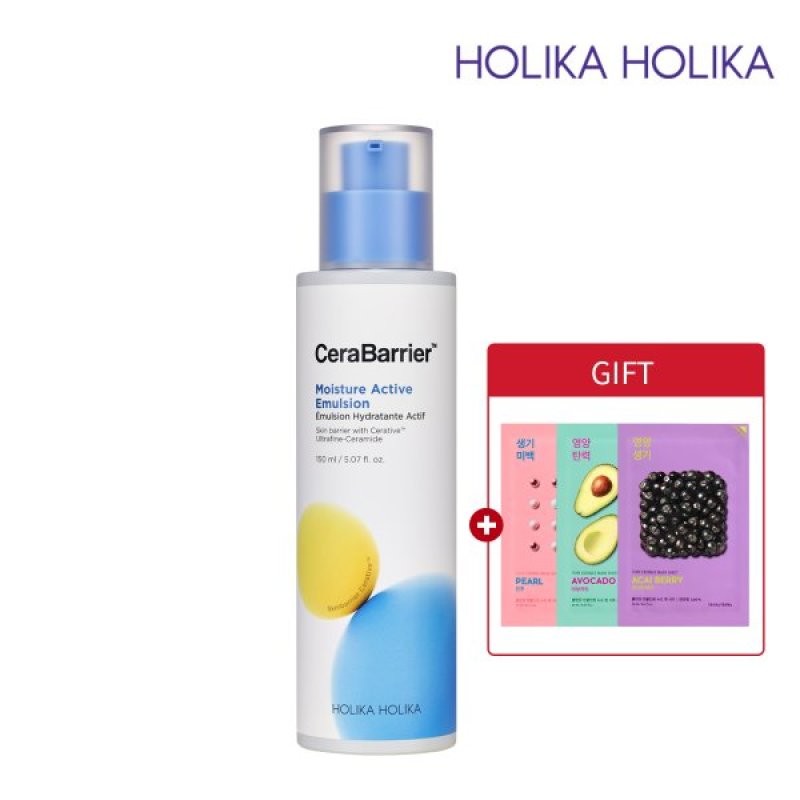 Holika Holika 마스크팩3매 랜덤증정 세라베리어 모이스처 액티브 에멀젼 Cerabarrier Moisture Active Emulsion + 3 Random Mask Packs