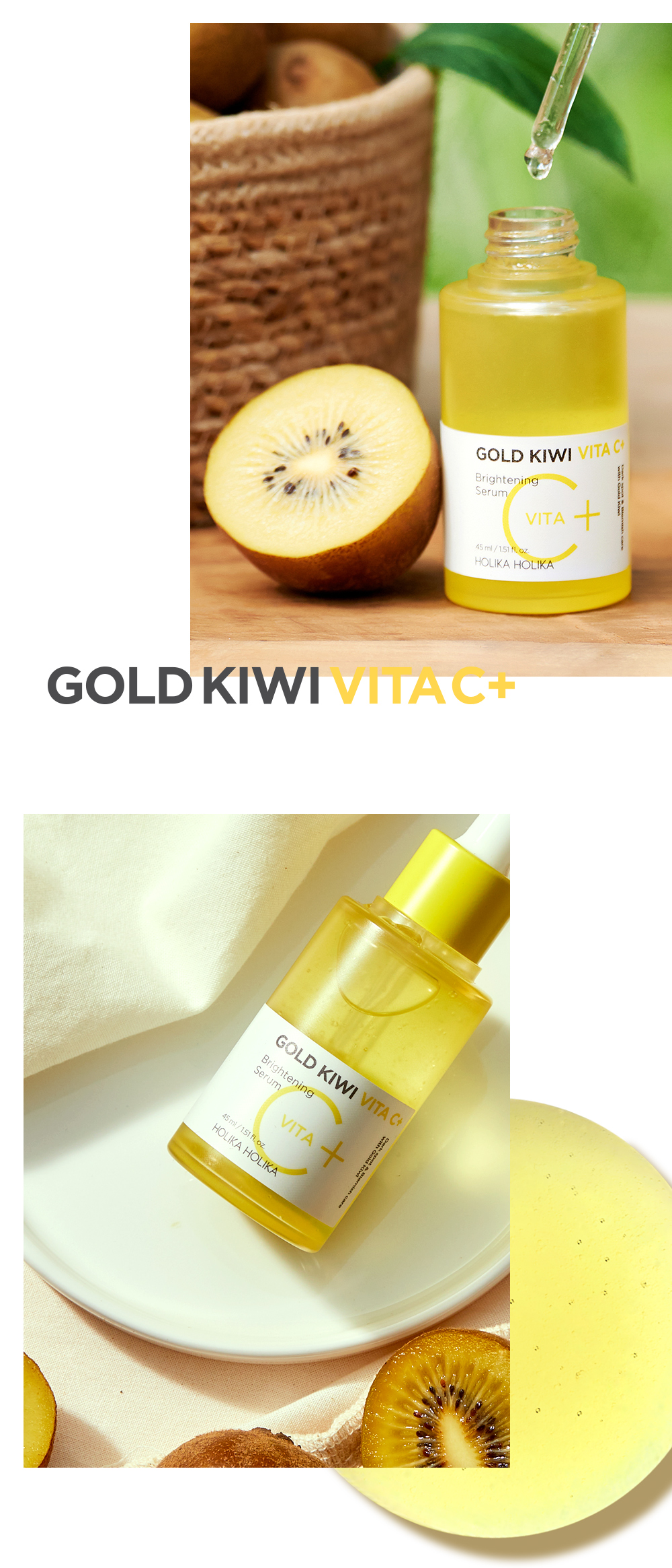 Holika Holika [Made with real domestic kiwi] Gold Kiwi Vita C+ Brightening Serum Special Set / 홀리카홀리카 [리얼 국내산 키위로 만든] 골드키위 비타 C+ 브라이트닝 세럼 기획세트