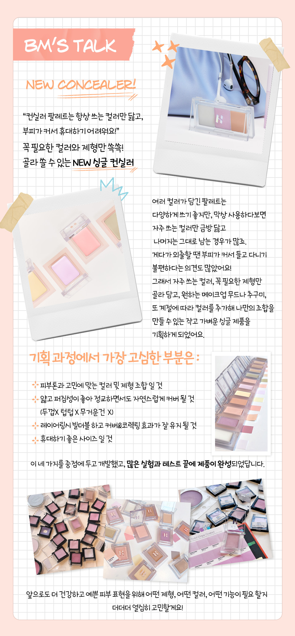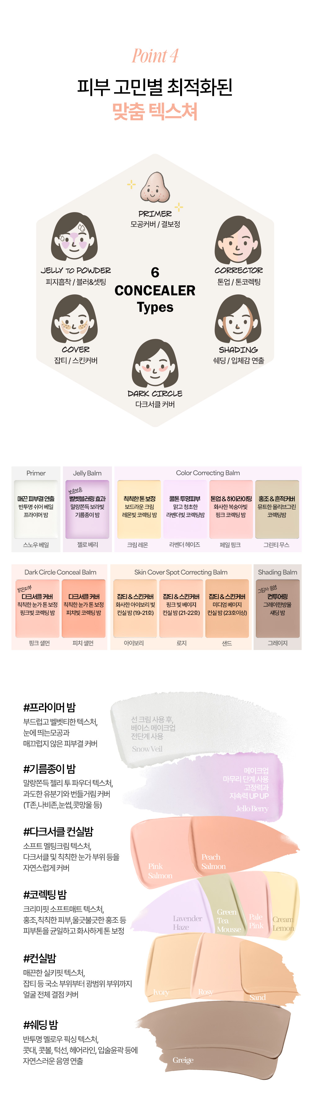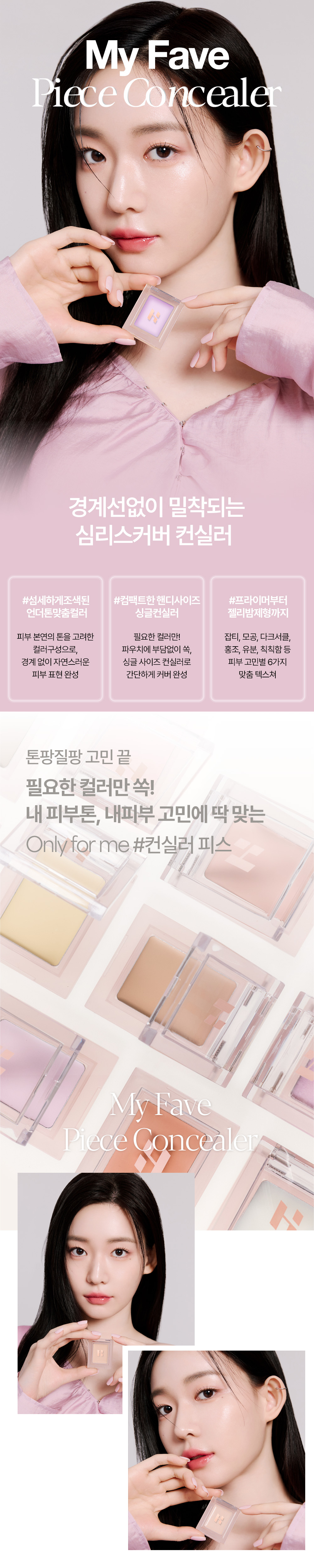 The shade spectrum for different kinds of skin tone allows to do perfect skin expression without any boundary. The single-sized concealer that can contains essential shades allows easy coverage. Improves 6 different kinds of skin concerns including blemishes, pores, dark circles, redness, oiliness, and darkness.