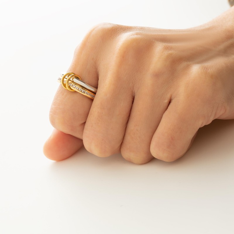 - Silver Ring Set: Our Connected Ring Set consists of two silver cubic zirconia rings and one gold ring connected by a gold vein ring. It creates a stylish and minimalist ring combination that is sure to make your fingers look unique and shiny.