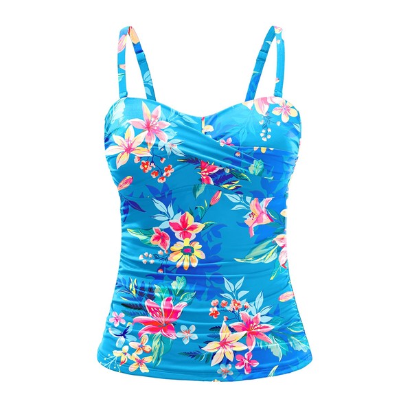 Holipick Tankini Top for Women Twist Front Bandeau Swimsuit Tummy Control Bathing Suit Top Only No Bottom Blue Floral