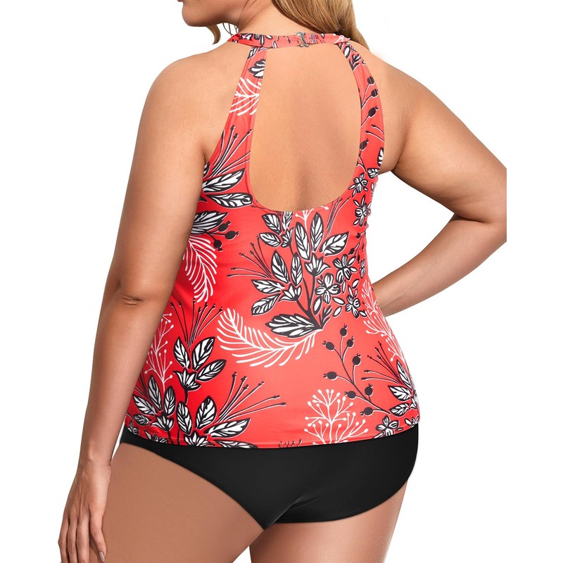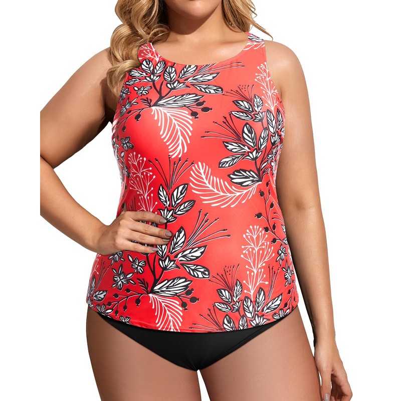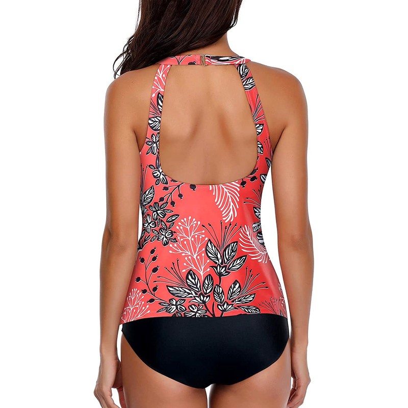 - Trajes de baño tankini de dos piezas para mujer: este conjunto de tankini floral rojo incluye una parte superior tankini y pantalones cortos de natación, lo que hace que este traje de baño de dos piezas con control de abdomen sea favorecedor y moderno.