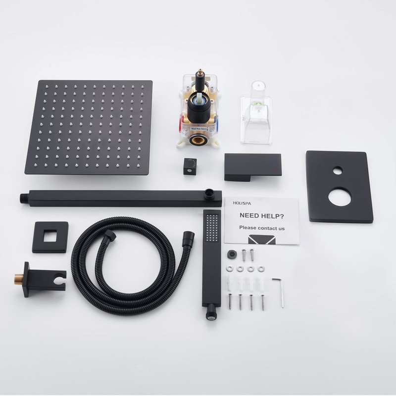 - Holispa shower system all made from high-quality 304 stainless steel and brass valve body. Matte black finished can resist daily scratches, corrosion and tarnishing in humid shower room