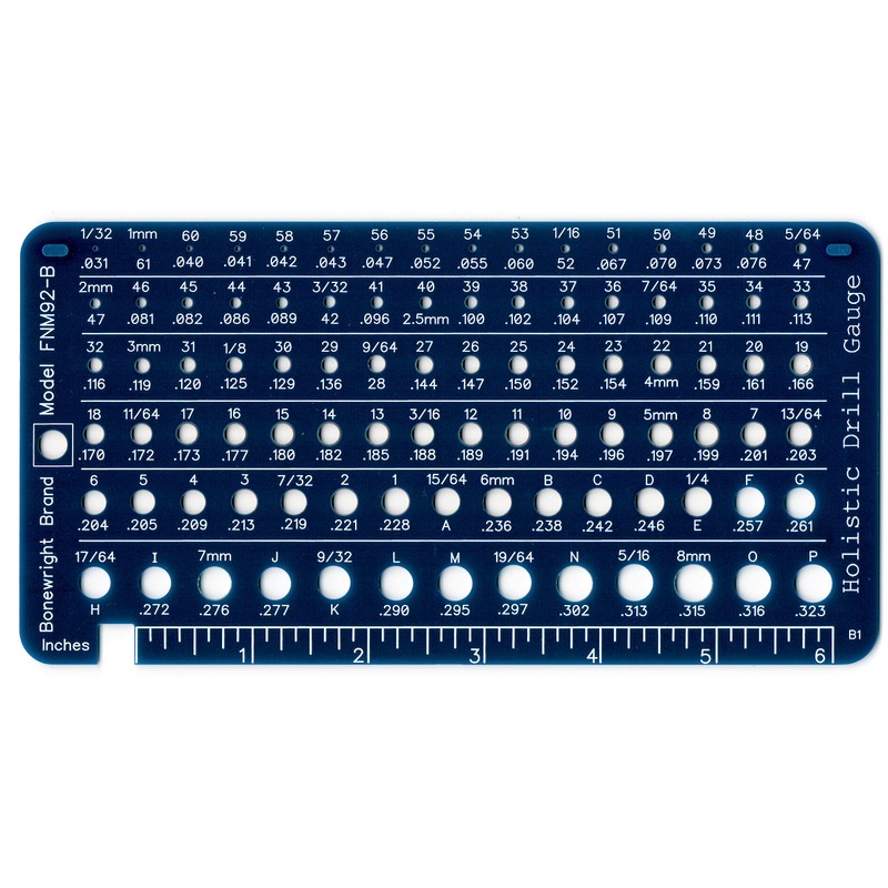 • Drill gauge holes are in absolute size order, making it easy to identify drill bits quickly no matter which family they belong to: Fractional, Number, Letter & Metric.