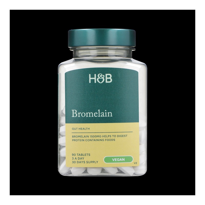 Holland & Barrett Bromelain tablets help to digest protein containing foods. Bromelain is derived from the stems of pineapple. These bromelain tablets support digestive health.