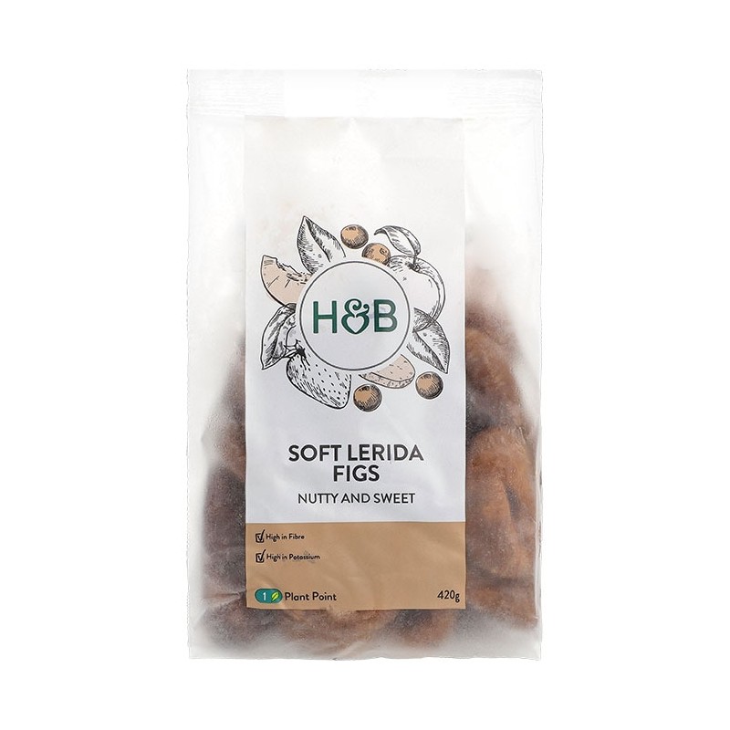 Holland & Barrett Soft Lerida Figs are high in fibre and potassium, these soft Lerida figs are nutty and sweet, perfect for snacking and baking.