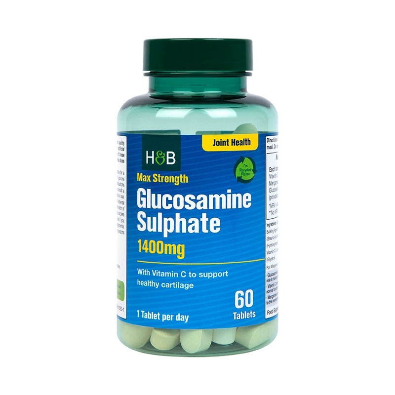 Holland & Barrett Max Strength Glucosamine Sulphate contribute towards joint health. Glucosamine is naturally found in the body and plays an important role in making the building blocks of healthy joints. These Max Strength tablets also contain Vitamin C and Manganese, contributing to normal collagen formation for the normal function of cartilage and to the maintenance of normal bones and the normal formation of connective tissue.
