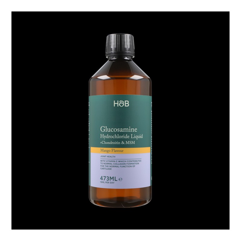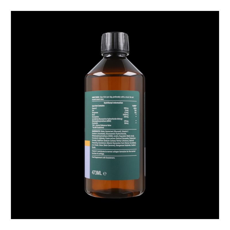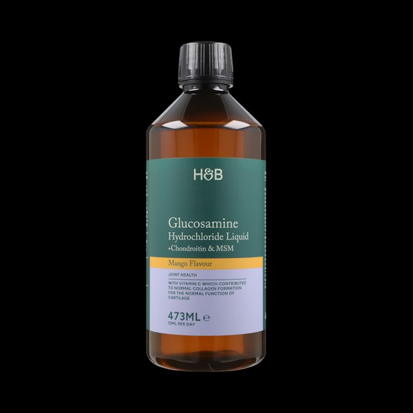 Holland & Barrett Glucosamine Chondroitin & MSM Complex Liquid for easy intake. Glucosamine and Chondroitin are naturally found in the joints of the body. Rarely found in natural food sources, Glucosamine is a building block of cartilage and joint tissue. It is the basis of the synthesis of several important macromolecules that can be found in the synovial fluid, cartilage, tendons, ligaments and muscles. Chondroitin is the tough connective tissue within joints. A natural form of organic sulphur, MSM is one of the major building blocks of glycosaminoglycan’s - key components of cartilage. The inclusion of Vitamin C in Holland & Barrett Glucosamine Chondroitin & MSM Complex liquid helps normal collagen formation for the normal function of bones and cartilage, whilst manganese contributes to the maintenance of normal bones and the normal formation of connective tissue.