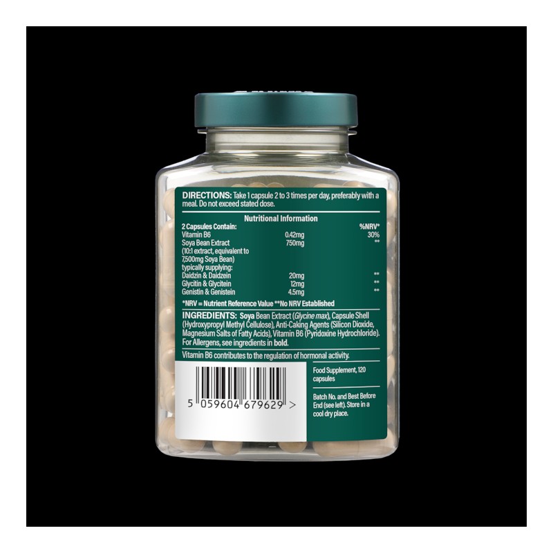 Soya Bean Extract (Glycine Max) (Soya), Capsule Shell (Hydroxypropyl Methylcellulose), Anti-Caking Agents (Silicon Dioxide, Magnesium Stearate), Vitamin B6 (Pyridoxine Hydrochloride). For Allergens, see ingredients in bold.