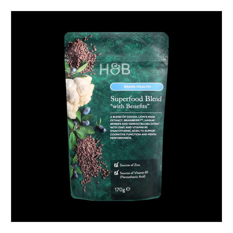 This superfood blend contains Brainberry™ – derived from Black Chokeberry, alongside haskap berries, blueberries, lion's mane, ginkgo biloba, baobab and cocoa. Plus, with vitamin B5 (pantothenic Acid) and zinc. Vitamin B5 (Pantothenic Acid) contributes to normal mental performance, while zinc contributes to normal cognitive function. 1085mg of lion’s mane mushroom in each 8g (1 heaped tbsp) serving.