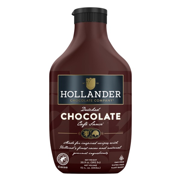 Hollander Dutched Chocolate Café Sauce™ | Vegan Friendly, GMO-Free, Gluten/Soy Free, Corn Syrup Free |15 fl. Oz. Squeeze Bottle