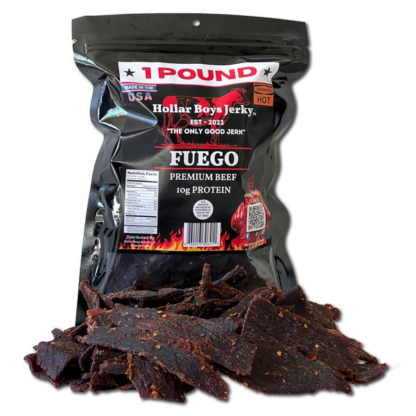 Hollar Boys Fuego Beef Jerky One Pound Resealable Bag, Low Carb, USA Made