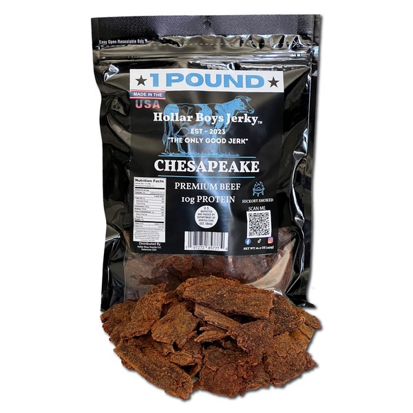 Hollar Boys Snacks Chesapeake Beef Jerky One Pound Resealable Bag, Low Carb, USA Made