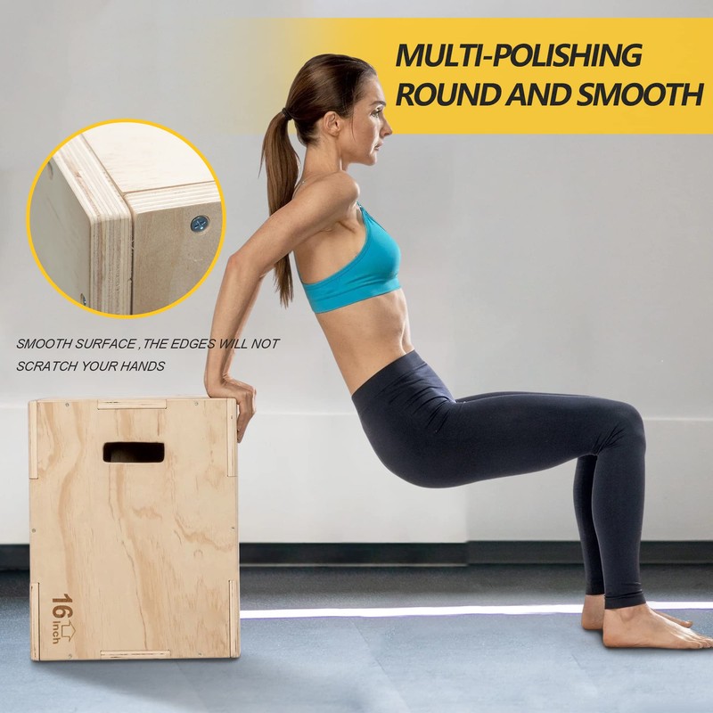 - 💪【MATERIAL】The plyo box is made of professional wood with a frosted surface and a non-slip effect; the internal support of the cross plate, and its stability, can carry 330 pounds, so you can use it with confidence during exercise.