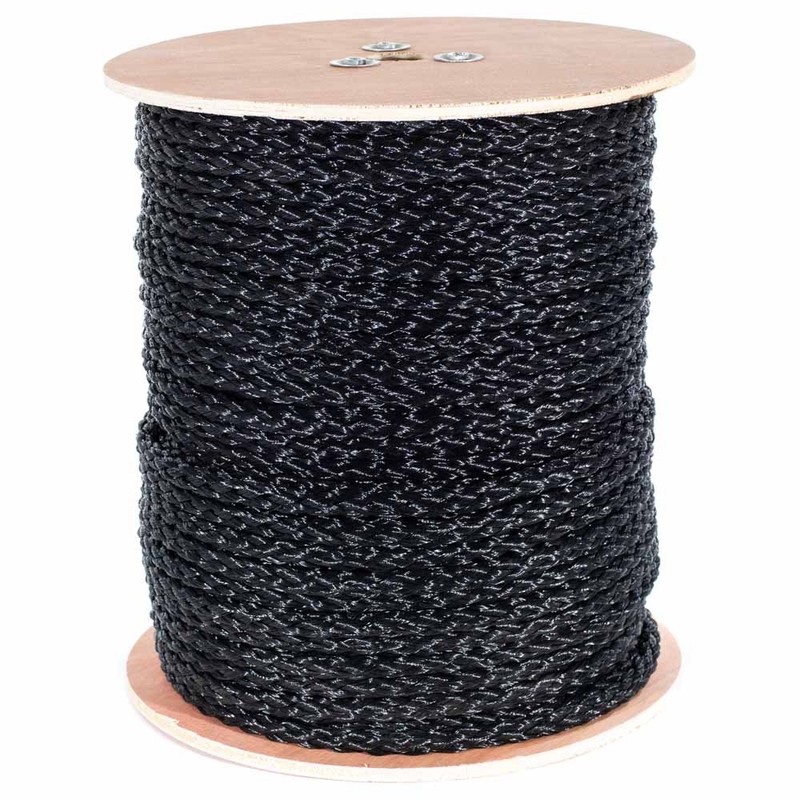 - ''' HOLLOW BRAIDED POLYPRO - our braided polypropylene rope is easy-to-use and economical all-purpose medium stretch rope designed for crowd control, trail marking, barrier marking, concerts, ski slopes, construction areas, swimming areas, and golf courses.#||# LIGHTWEIGHT AND DURABLE - a feather-light rope with exceptional sturdy technology. The polypropylene fibers are naturally hydrophobic and resistant to all types of weather conditions, chemicals, and abrasions.#||# AFFORDABLE AND HIGH QUALITY - Polypro is cheaper than nylon and polyester but still packs a high tensile strength and excellent knot retention. The largest diameter size can hold up to 1000 pounds. Buy in bulk and save more money for big projects requiring a large amount of cordage.#||# WIDTH x LENGTH x COLOR - (1/2 Inch x 500 Feet x Black) Available in diameter thickness options of 1/2 inch, 1/4 inch, 3/8 inch, 3/16 inch, and 5/16 inch. Choose between pre-cut lengths of 50 feet, 100 feet, 500 feet, and 1000 feet. Golberg has color options of: Black, Blue, White, Yellow, Red, Orange, Hunter Green, and Hunter Green / White. (Note: item doesn't always come on a spool.)#||# PREMIUM BRAND - Golberg offers high quality products at affordable prices with customer satisfaction guaranteed. Manufactured in the USA with the promise of strength and consistency in all of our products.'''