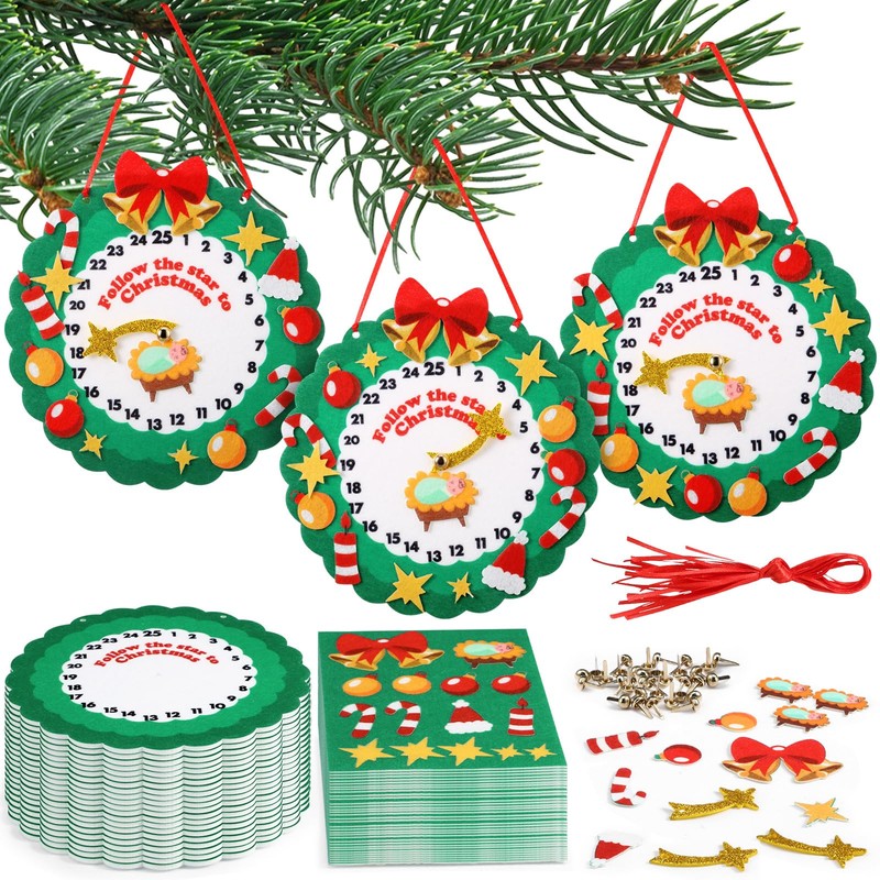 - Comprehensive Crafting Package: this package includes a set of 24 each of green wreaths, sticker felts, arrows, lashes, and 2 legged nails; This bulk assortment ensures your young artist won't run out of materials midway; A complete Christian religious Christmas crafts selection under just one purchase