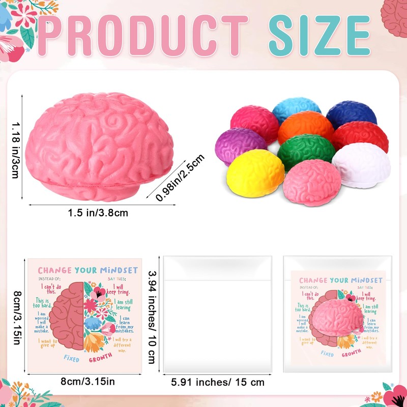 - Growth Mindset Gift Set: the package consists of 30 mini brain stress balls in 10 colors, 30 motivational cards, and 30 organza bags; Serves as a daily educational tool, helping to rewire thought patterns towards growth and positivity; They are a nice gift for people who require motivation or stress relief