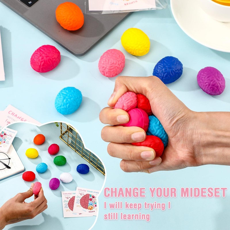 - Growth Mindset Gift Set: the package consists of 30 mini brain stress balls in 10 colors, 30 motivational cards, and 30 organza bags; Serves as a daily educational tool, helping to rewire thought patterns towards growth and positivity; They are a nice gift for people who require motivation or stress relief