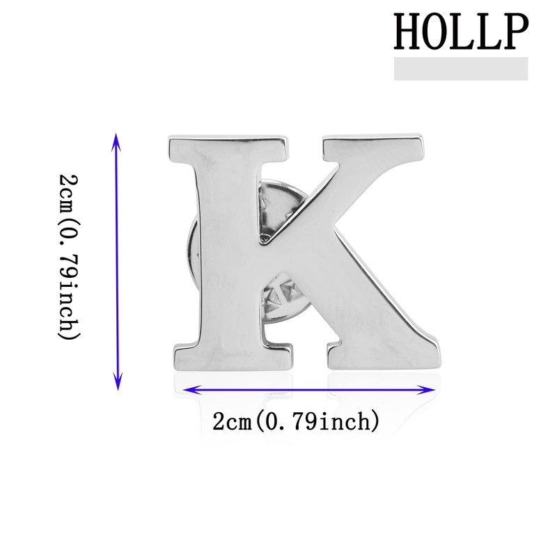 HOLLP Alphabet Jewelry A/C/J/K/M/S Letter Lapel Gift Initial English Pin for Women Men, Stainless Steel, no gemstone