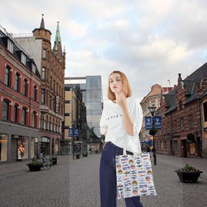HOLLP Swimming Themed Tote Bag The Pool Is My Home Shopping Bag Swim Team Gift Swimming Idea Shoulder Bag (The Pool Is My Home)