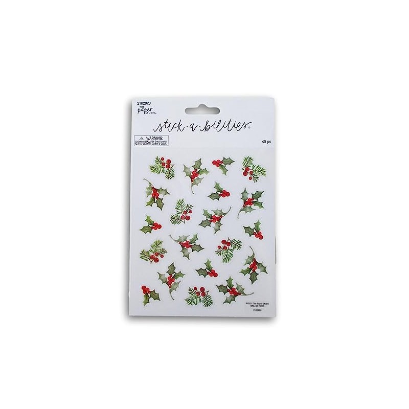 Holly Berry Christmas Stickers for Journaling, Scrapbooking, Cardmaking, Arts & Crafts - 40 Pieces