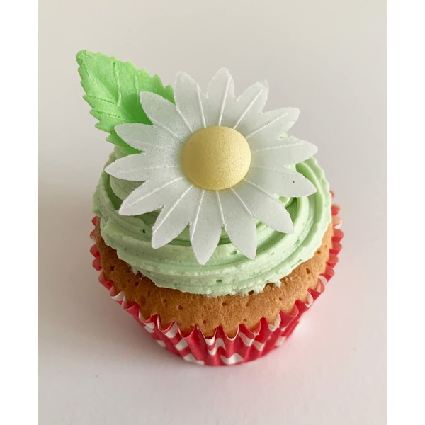 Holly Cupcakes 12 Gorgeous White Edible Wafer Daisies & 12 Pretty Leaves