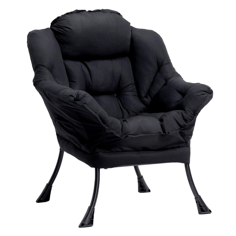 HollyHOME Modern Fabric Large Lazy Chair, Accent Oversized Comfy Reading Chair, Thick Padded Cozy Lounge Chair with Armrest, Leisure Sofa Chair for Living Room, Bedroom, Dorm, Matte Black