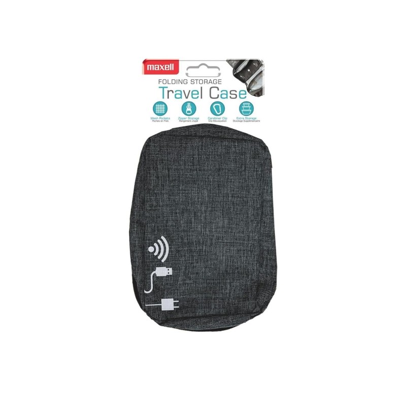This compact, foldable travel case keeps accessories protected and organized. Designed for portability, it fits easily into luggage and includes a hook for hanging when open.
