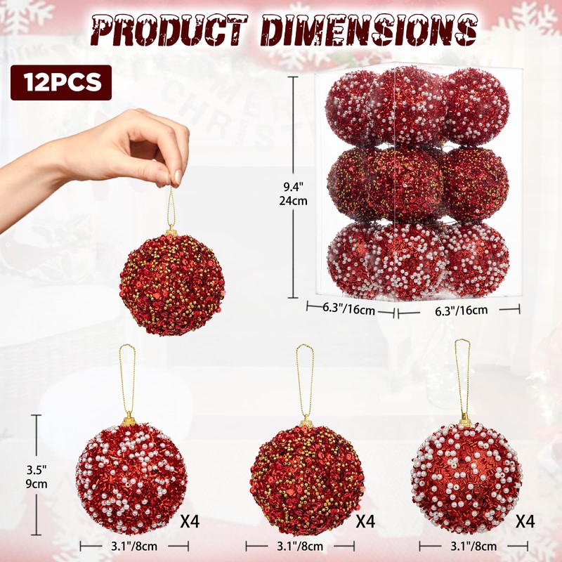 • 🎄【MULTI STYLE TREE BALL】DECORATIVE HANGING BALLS -The appearance of these Christmas balls are surrounded by many strings of pearls for a more sparkling effect,the other is a combination of sequins and scattered pearls,you can hang it anywhere you like. Perfect fit for decoration in home, hotel, restaurant, Party, Wedding, office buildings and so on Christmas showcase landscape layout.
