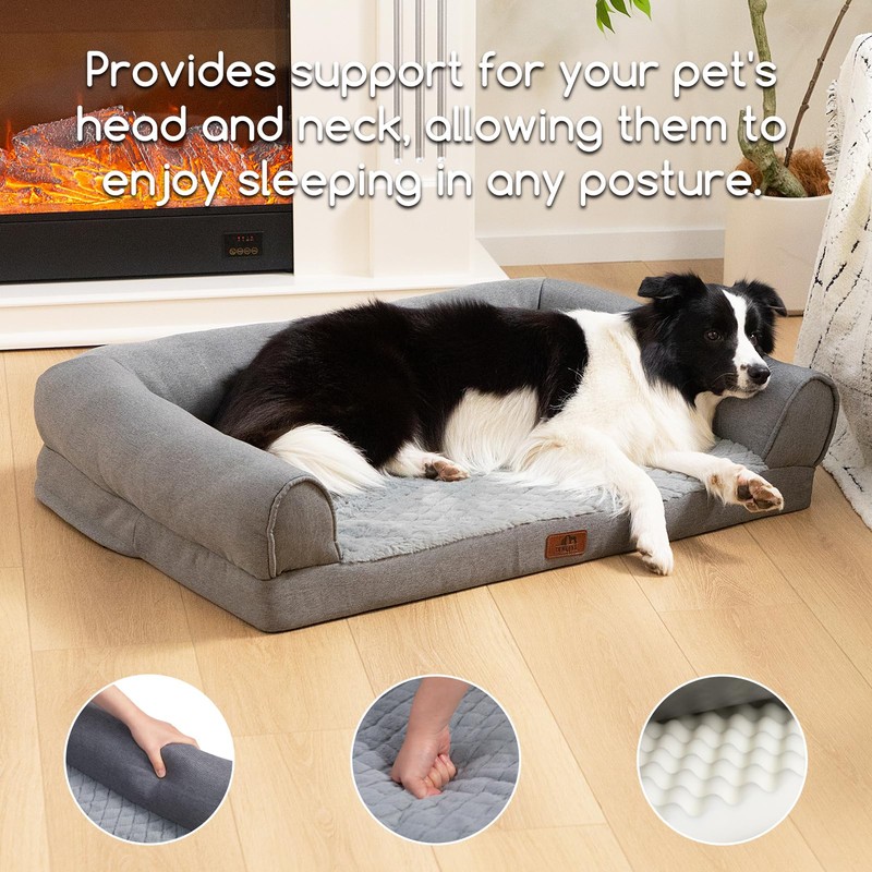 Hollypet Orthopedic Dog Bed for Large Dogs, Supportive Foam Dog Pet Couch with Removable Washable Cover and Non-Slip Bottom, Waterproof Lining Dog Sofa Bed, Gray, L (36 * 26 * 8)