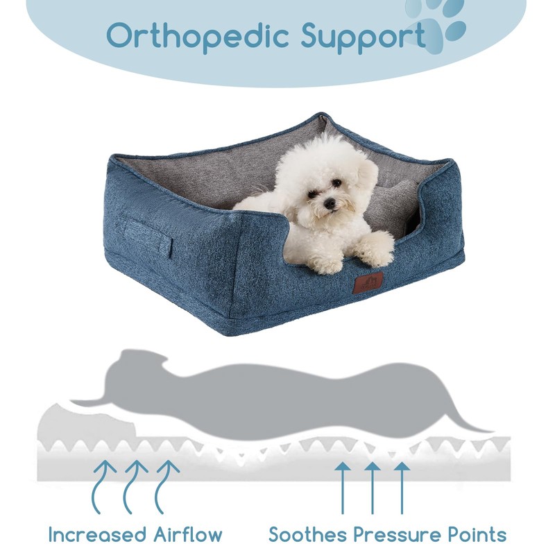 Hollypet Orthopedic Rectangle Dog Bed for Small Dogs, Supportive Egg-Crate Foam Pet Beds with Removable Washable Waterproof Cover and Non-Slip Bottom, Blue, 23" L x 19" W x 8.5" Th