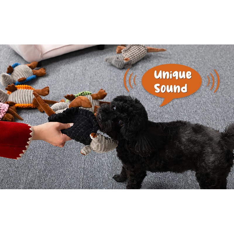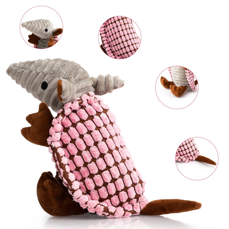 - Unique Sound - Hollypet Armadillo Squeak Toys (except 6 inch) make a sound that's not high pitched, but rather a unique and funny grunt sound that your furry friend will love. Unlike noisy bones, ropes, or other normal stuffed plush dog toys