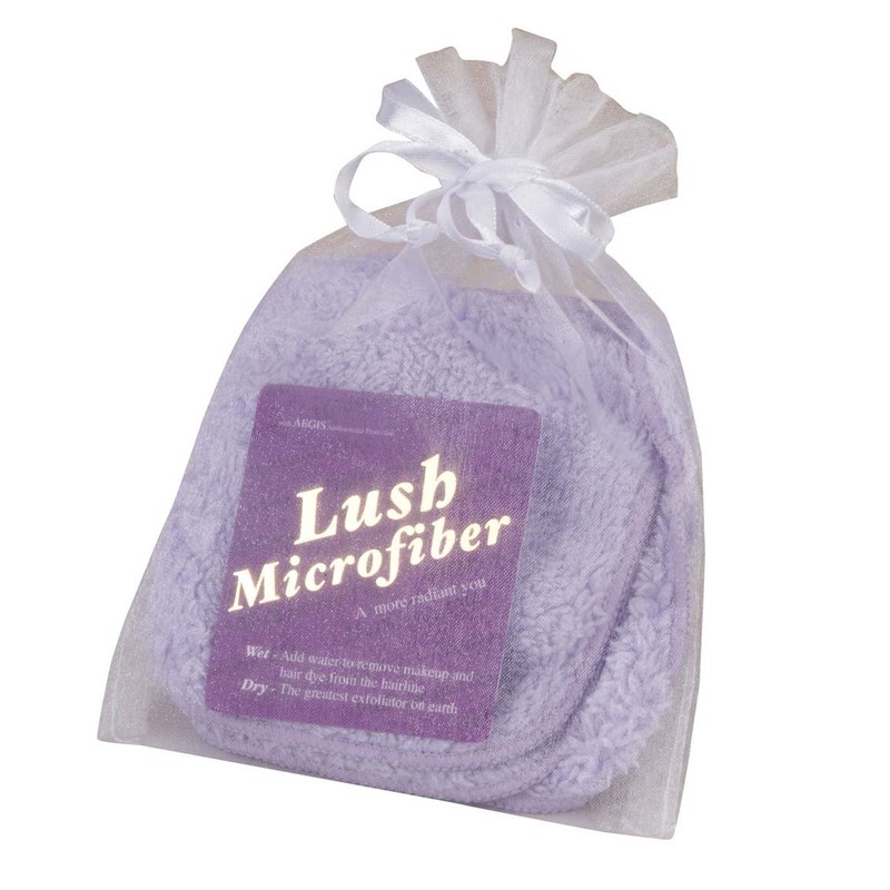 - A Total of 9 Lilac Mini Cloths in See-Through White Organza Bags w/ a Gold-Embossed "Lush Microfiber" Card