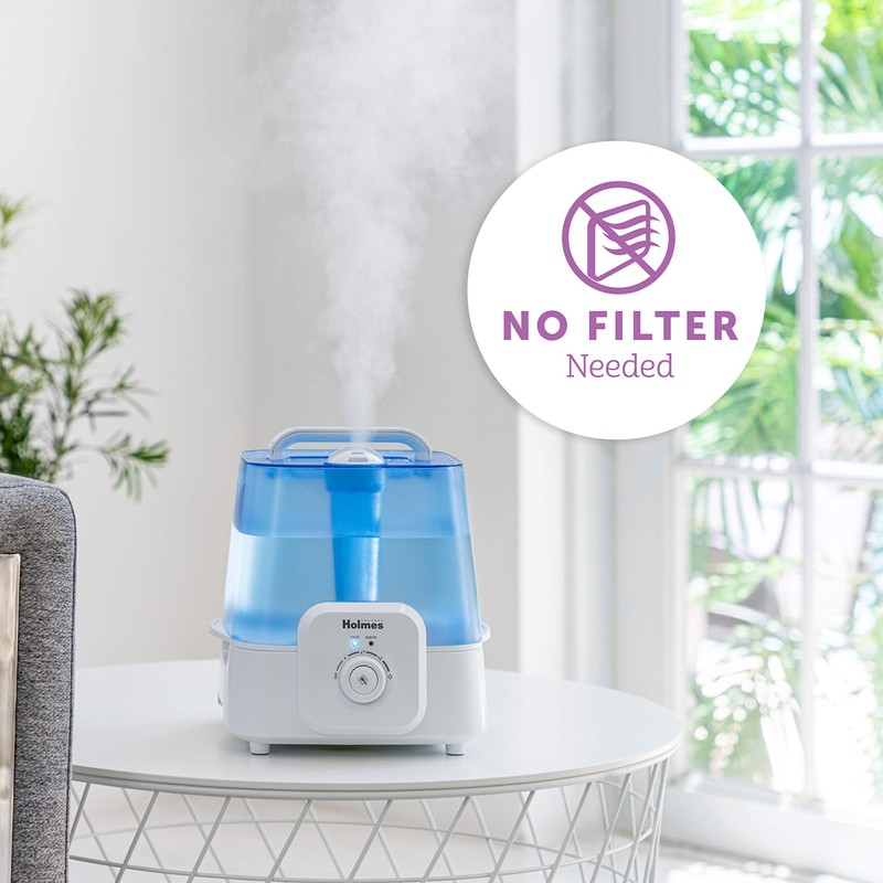 - ULTRASONIC HOLMES HUMIDIFIER: This energy-efficient Holmes ultrasonic humidifier propels visible cool and warm mist, with a virtually silent, filter-free operation