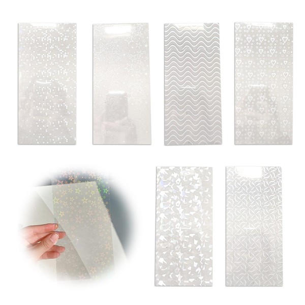Hologram Stickers, Glitter Stickers, Trading Card Deco, Set of 6, Clear Stickers, Emits Aurora When Illuminated and Easy to Use, Removable, Waterproof, DIY Decoration