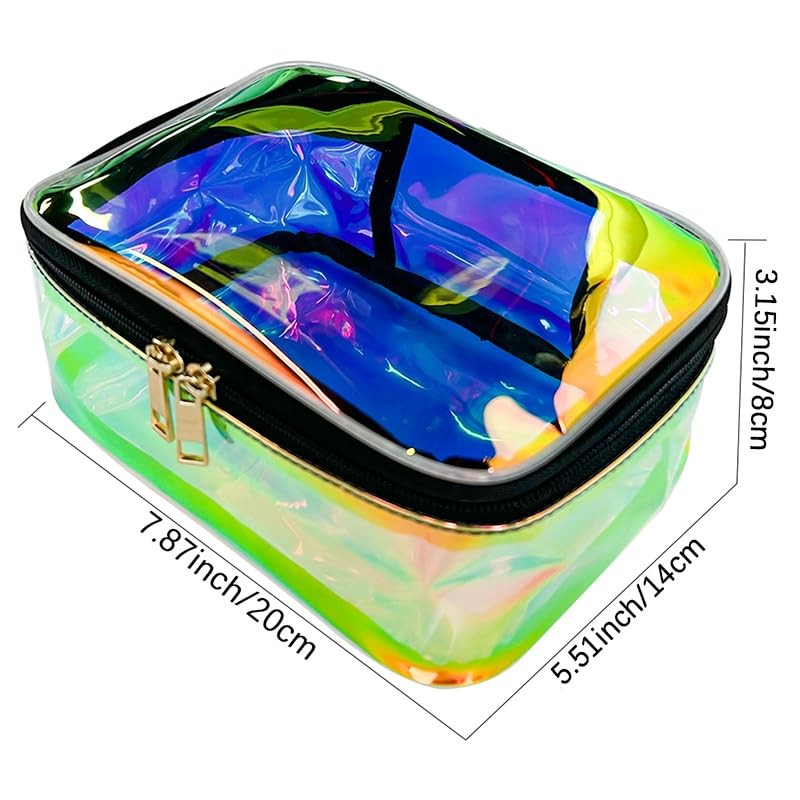 - Size: This cosmetic pouch is 7.87"x5.51"x3.15", holographic colors will catch all eyes when you go out with it. large enough to carry many of your toiletries, daily necessities and makeup, and the quantity is enough for you to use and share them with others