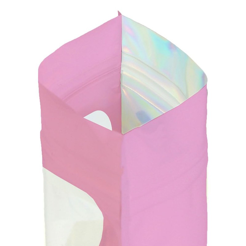 Holographic Foil Clear Window & Pink Resealable Zip Baggies for Small Business, Home Use, Food Storage, Beauty Sample, Bulk, DIY Hangover Kit Bags (100, 3.94 inch x 5.91 inch)