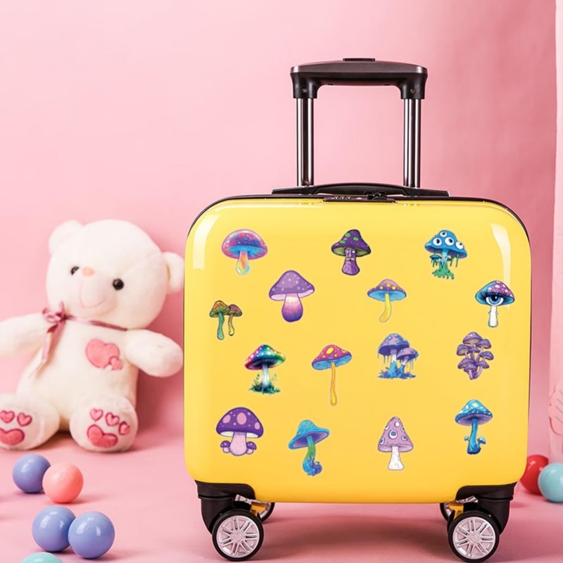 Design: 2.0-2.5 In, Colorful Holographic Gold Foil Mushroom Aesthetic Motifs.
