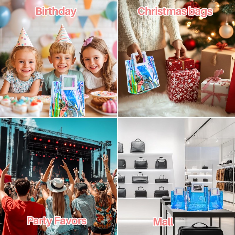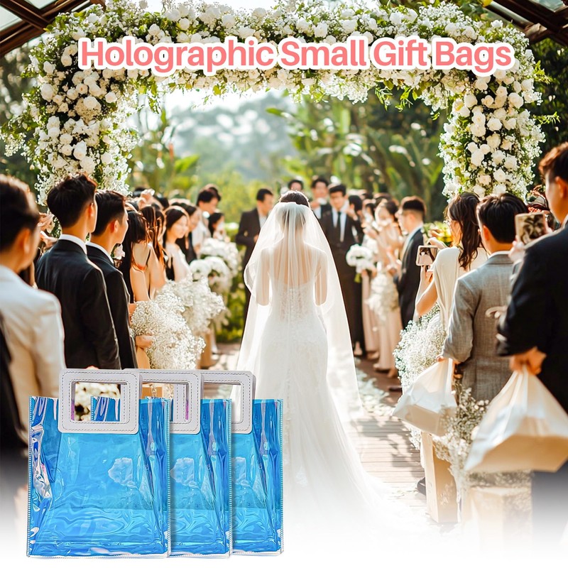 Holographic Small Gift Bag with Handles Iridescent Transparent Reusable Bags for Women Birthdays Weddings Party