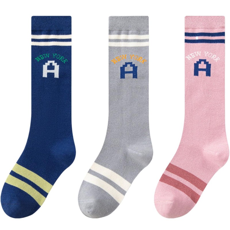 [HOLRAFAN] 子供靴下 膝丈 ガールズ スポーツ ソックス 3足セット キッズ靴下 キッズ ソックス 女の子 男の子 通気性 耐久性 学生用 通学 登園 通園 上品 入学式 発表会 (1/桜 ネイビー 灰 XL)