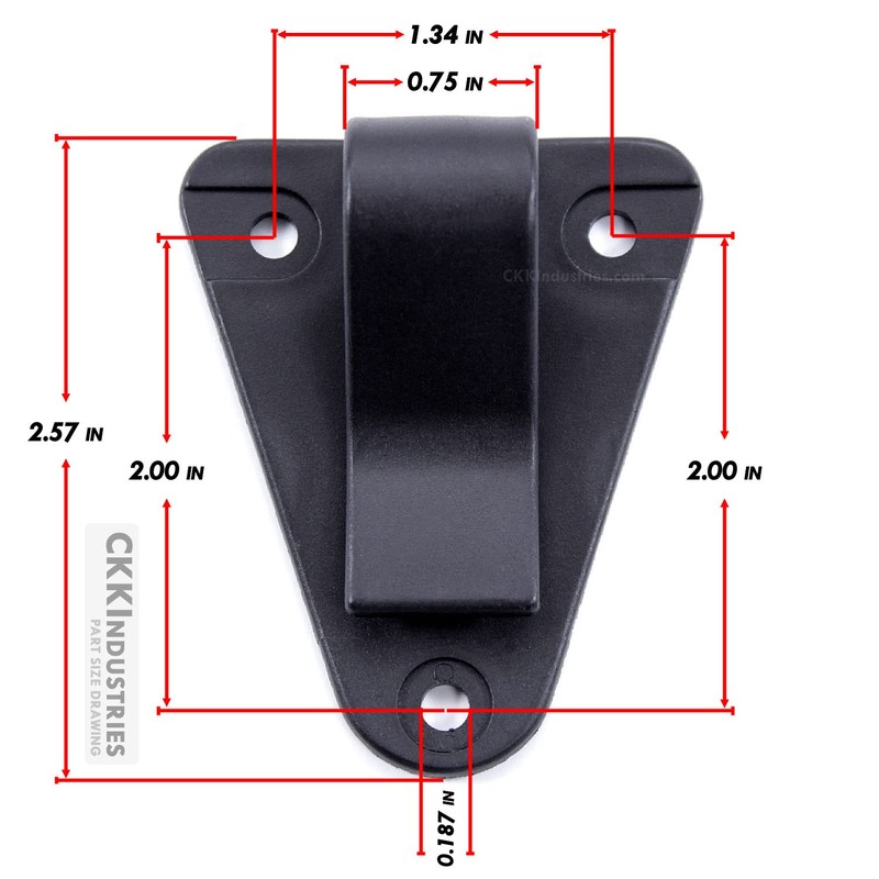 This value-priced combo is the Model 10 universal sheath/holster clip with mounting hardware included. Each Model 10 Clip comes with (3) AV-SP-1875-BK slotted posts, (3) AV-832PHP-BK-250 Pan Head Phillips Drive Screws, and (3) W-EPDM-500180125 washers. This mounting hardware setup is perfect for most applications.