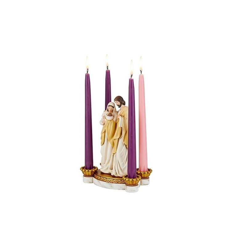 - ADVENT CANDLE HOLDER: Carved resin with 4 integrated, metal lined taper candle holders (candles sold separately)