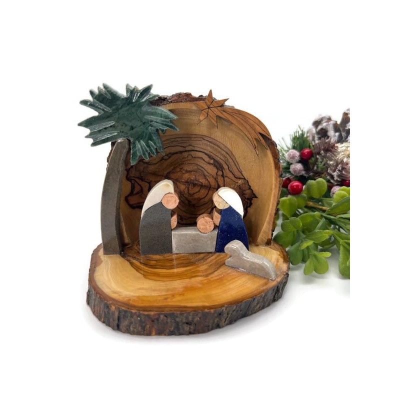 Holy Land Crafts Nativity Scene Indoor, Handmade Nativity Set Carved from Olive Wood and Jerusalem Stone, Unique Nativity Set for Christmas Decorations and Gifts