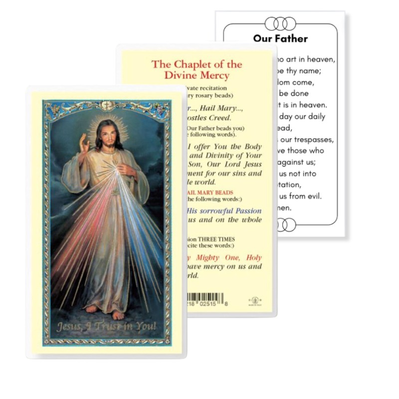 Holy Lines Laminated Divine Mercy Chaplet Prayer Card with Our Father Card Set